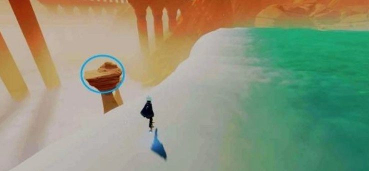 加速跳跃至较近的一根,即可发现贝壳。拾取后跳上第二根石柱,按下正方形键即可返回主区域。