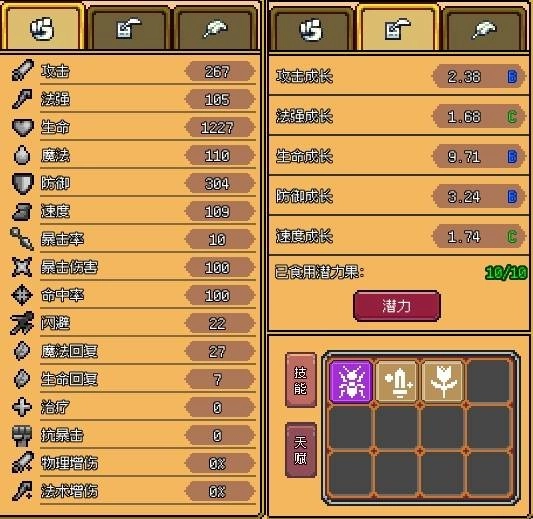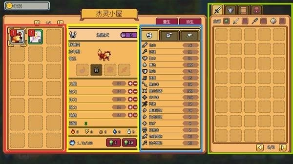 杰灵小屋是用于培养杰灵的专属页面,在这里可以查阅杰灵的全部信息,这些信息主要分为四个部分。