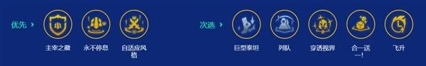 有主宰转的话,可以把蔚和布隆换成沃利贝尔与永恩,永恩携带主宰转、血手和泰坦,能在人群里灵活穿梭!其他符文选择提升前排坦度或者提供持续伤害的类型就好。