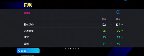 *增能后球员总评可达104分,上阵最大总评可达108分