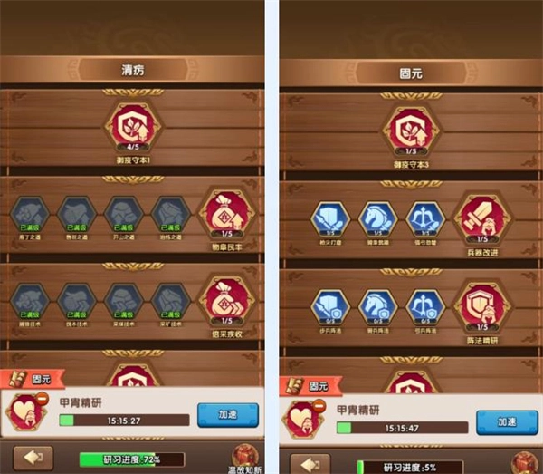 8、剧本科技(济世堂):本次剧本新增了建筑济世堂,类似之前赤壁之战的定凤台、富甲天下的议政堂,可以通过研习兵书获得免疫值、内政加成、军事属性等多方面增益。本次兵书系统仅限于在凛冬将至所有剧本中使用,通过积累研习进度依然可以最终返还至多80%的汉白玉、神兵玉石材料。