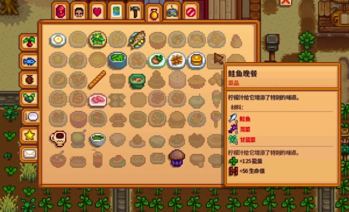 钓鱼收获的鱼类也是很好的补给来源。随着厨房的升级,你还能解锁并制作各类食谱,这些加工过的食品往往比原材料有着更高效的恢复效果。