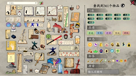 3游戏图鉴里收录了300多种武侠相关物品,包含内功、招式、武器、丹药等不同类别。每一件物品都具备独特的属性,并且存在多样的搭配可能性,玩家可以在一次次对战过程中去解锁和钻研这些物品,从而构建出专属于自己的武学宝典。