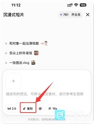 有3次免费体验Seedance2.0模型的机会,体验结束后就需要用积分来使用了。这里的底部菜单里有个抖音复刻功能,你只要复制想复刻的抖音视频链接,填进去解析后就能一键完成复刻,就像图里这样: