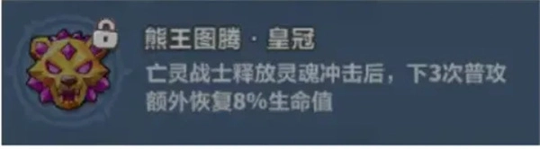 2、技能二噬魂战士:亡灵战士会额外继承国王的部分血量,国王剩余生命值越低,亡灵战士的攻速提升就越多;当亡灵战士自然退场时,会根据其存活期间造成的总伤害,按照自身剩余血量的比例转化为一次高伤害的灵魂冲击。该技能必须搭配低血增伤效果,不能使用城墙机关弹簧,否则会延迟召唤时机。
