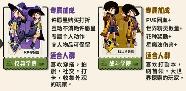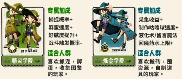 若偏好休闲、稳定资源获取,选择精灵学院。