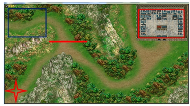 到了第2回合,我方军队和敌方大部队同时出现,接下来的任务便是清理敌军。当营寨内敌军数量少于40人时,会有9个伏兵从蓝框处涌出。罗成进入营寨后,敌方全体将士会陷入士气低落的状态。李世民与罗成对话完毕后,尉迟恭会移动到李世民身旁,此时可以利用这一点让尉迟恭脱离山地地形。
