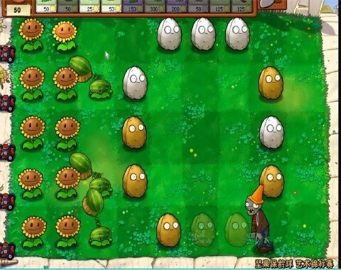 3、飞速发展的建筑需采集更多阳光,布置简约的植物构建自身防御阵容,以防强大的僵尸突破防线。
