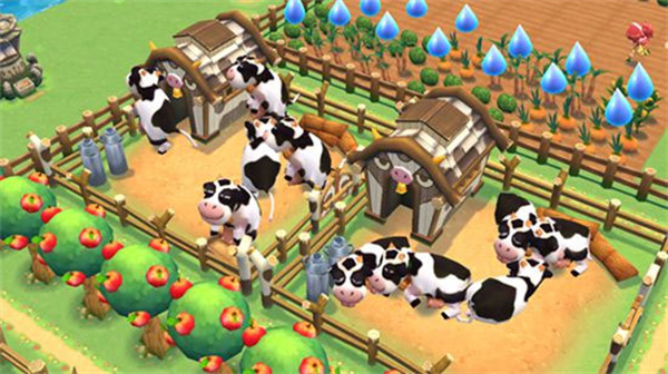 刚开始你会得到一群勤劳踏实、爱干净的好朋友——奶牛,它们能为你产出新鲜纯白、带点甘甜的牛奶,每20分钟就能收割一次。这可不是普通的牛奶哦,在这个依山傍水的清新小镇里,能尽情呼吸纯氧满满的空气,奶牛们随时能吃到新鲜的谷物饲料,这些都给你的奶牛伙伴们的健康筑起了天然的保护屏障。有时候它们兴致来了,还会调皮地围坐成一圈,露出萌萌的又有点小贱的表情,那可是一种特别的魅力呢!