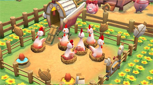 你的第二波动物伙伴是一群单纯可爱的母鸡,它们会为你产出无添加、无农药、无催化剂和无激素的鸡蛋,每小时都能进行一次收割。它们有时会排成整齐的队伍在圈里漫步,有时会昂首啼叫一声,待产时也十分安静温顺,你或许会留恋把手伸进它们羽毛下触摸到温暖身体时的那种愉悦感。