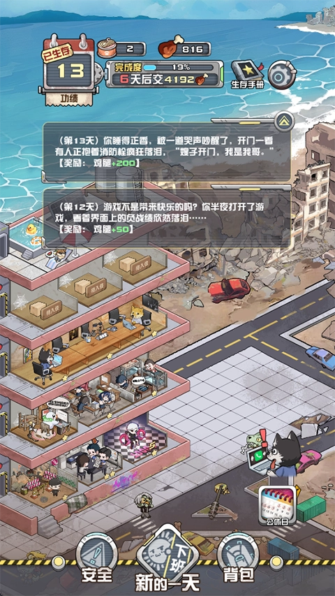 在资源稀缺的末日环境里,玩家要对食物、水、药品这类生存必需品进行合理调配,保证公寓里每个人的基础生存需求都能被满足。