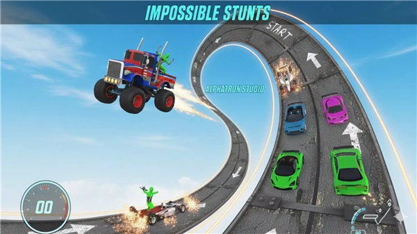 3、在巨型坡道汽车特技挑战中,若车辆冲出赛道导致赛道结构被碾压,你将退出游戏。