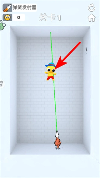 3、跟随红色箭头的指引,在确认好瞄准角度后发射弹簧武器,击中目标角色即可完成本关的攻击任务,从而推进关卡进度。
