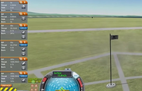按下T键即可启用发射稳定装置(SAS),以此维持火箭飞行方向的稳定。