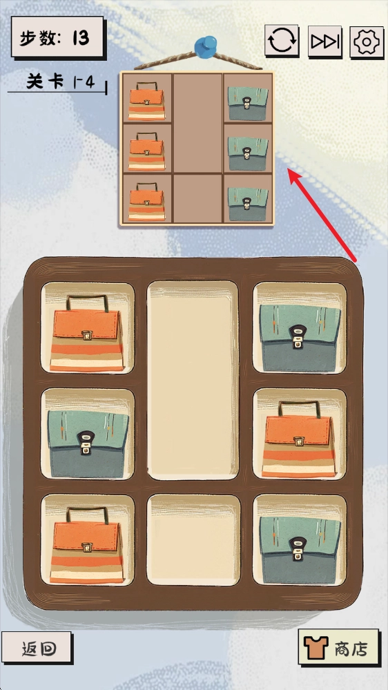 在限定的步数和操作范围内,把杂货铺里杂乱的陈设调整成目标图的模样,完成每个场景的拼图关卡。解开一关又一关的谜题,拼凑出整洁的杂货铺全景。能不能让老爷爷称心如意地重新开门营业?快来展现你的空间思维和策略规划能力吧!