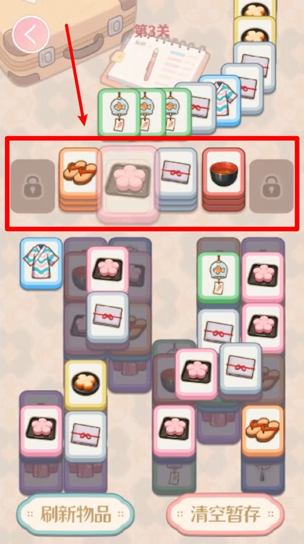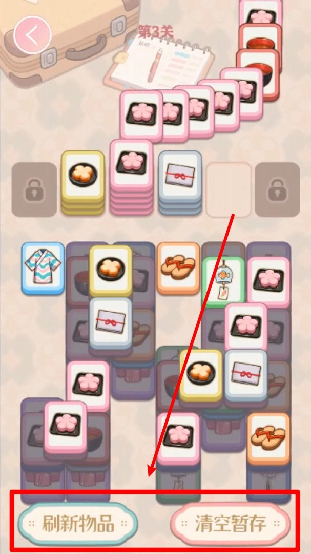 3. 下方设有“刷新物品”与“清空暂存”按钮,恰当运用这些功能能够助力玩家更高效地达成卡片消除任务。
