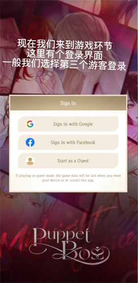 1、进入游戏界面后,第一步是登录账号,通常选择游客登录即可。