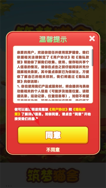 1、在本站游戏后打开游戏,点击同意用户协议