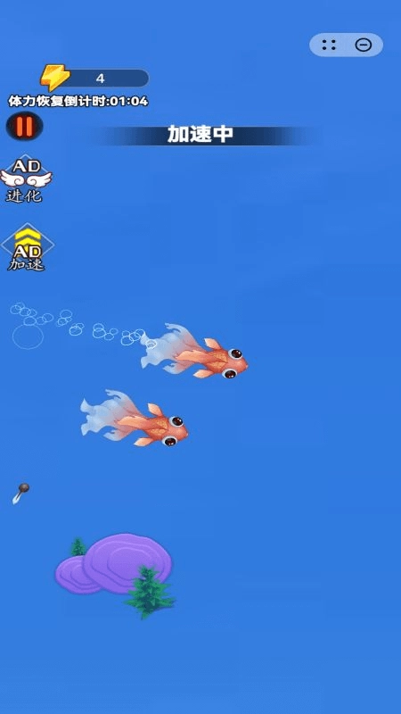 2、游戏中设有独特的进化与加速机制,玩家可通过观看广告等途径触发该机制,从而在游玩过程中体验到别具一格的成长感与速度提升乐趣。