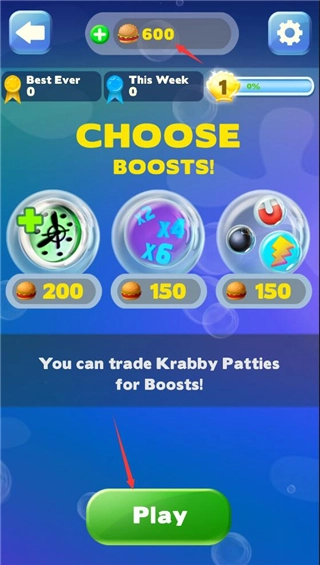 2.能够挑选不一样的角色,不过关卡刚开始的时候只能使用海绵宝宝。