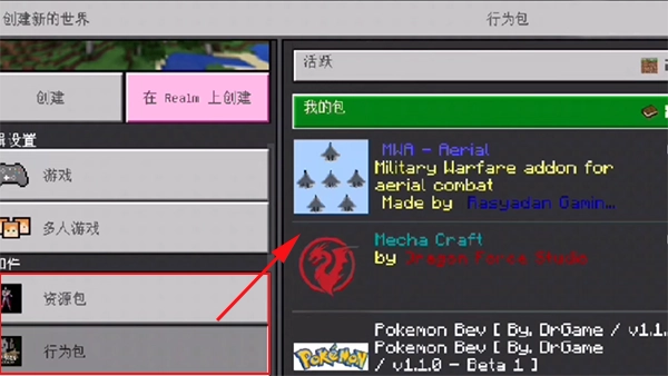 接下来回到游戏创建世界的界面,在“资源包”选项里就能挑选刚才获取的mod模组了。