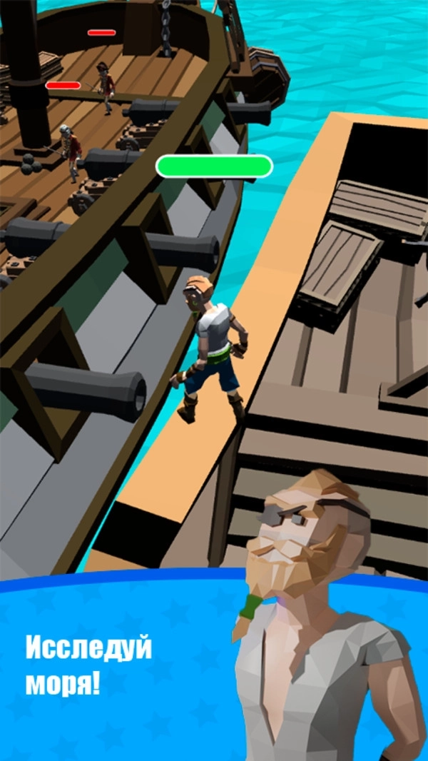 探索海盗世界是一款全程围绕海上冒险展开的游戏。渔夫罗杰在一次出海钓鱼时遭遇了恶劣天气,他的小渔船被台风直接掀翻。幸运的是,罗杰靠着渔船上一块破损的板甲才得以逃生。他意外漂流到一座岛上,结果被驻守在岛边的海盗抓住了。