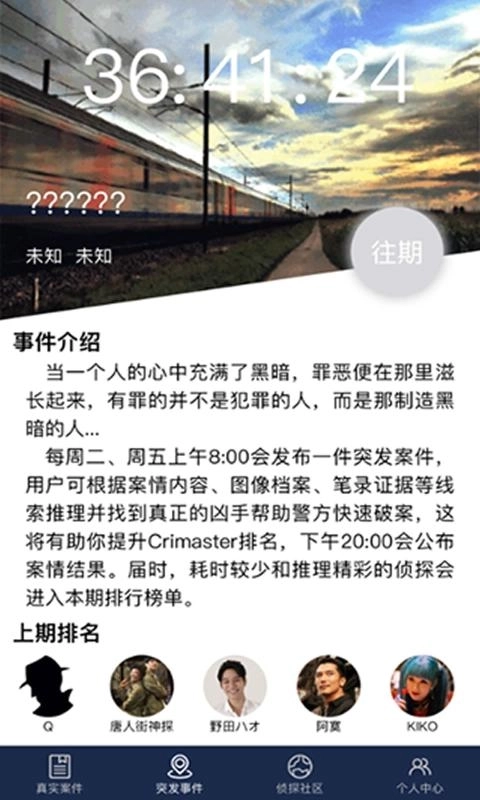 《探案大师》是一款极具挑战性的解谜游戏,它考验着玩家的观察力与侦破案件的能力。你是否渴望成为全球顶尖的侦探大师?那就加入我们,开启对各类案件的挑战吧!凭借你的智慧去揭开每个案件背后的真相,只要能找出所有真相,你必将成为最出色的侦探大师。