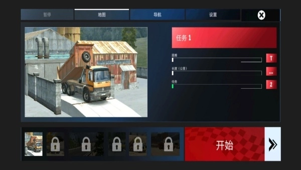 1、进入游戏后,第一步是挑选一辆工程车,接着领取任务,最后点击开始按钮。