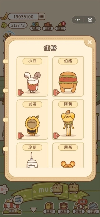 2.如下图所示,在住客面板里,玩家能够查看住客的相关信息,并且可以依据他们的需求持续对公寓进行改造与升级。
