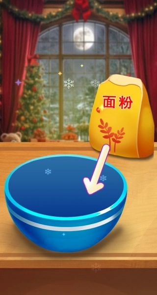 1、进入游戏后,点击圣诞老人形象旁边的开始按钮,就能开启第一日的甜品制作挑战,借此熟悉基础流程。