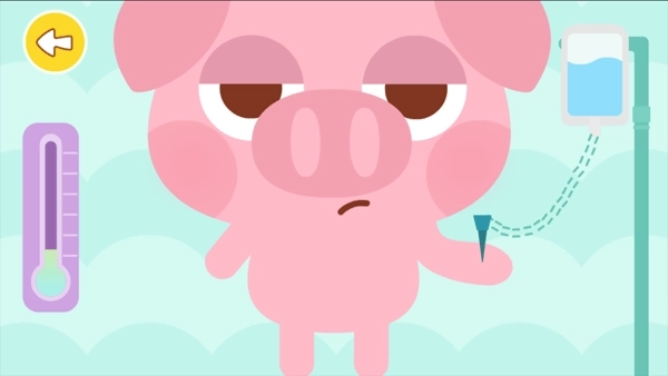 4、协助小动物恢复健康,在这里我们选择为小猪进行静脉输液,帮助它尽快康复。
