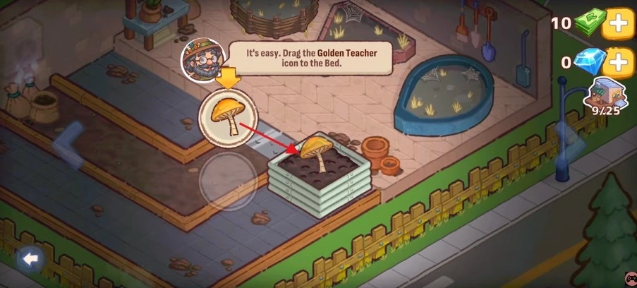 2.开辟土地,种植并收获你的第一批蘑菇。