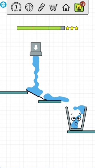1、在触控屏幕的任意位置创建引导线,以此保证液体可以精准地流入目标容器,从而顺利完成关卡。