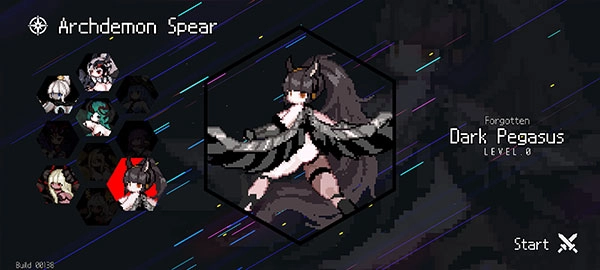 2、在初始编队界面,滑动左侧的六边形头像轮播栏,可预览五位首发恶魔的定位与特性(例如诅咒系、爆发系、持续压制型等),选定主力后点击右下角的“Start”按钮即可组建小队。