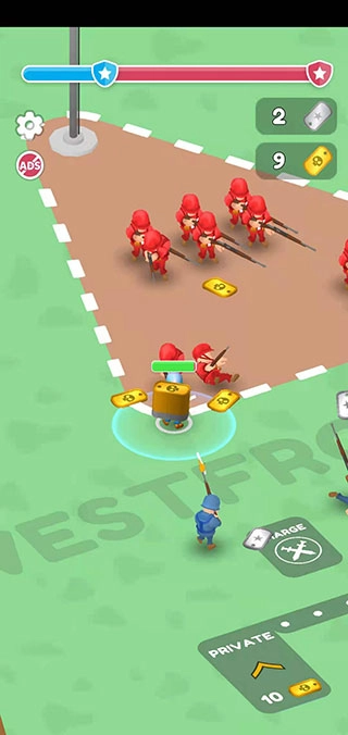 5、战胜敌人能得到金币,接着收集金币,用这样的方式招募更多的小兵!