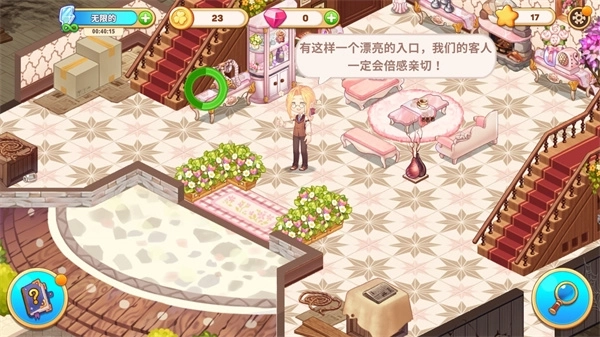 2.玩家可以打造具有个人风格的豪华别墅,通过不断通关获取手机金币,购买各类家具,完成房屋的软硬装修。
