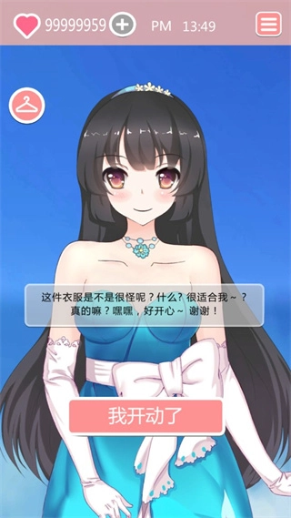 1、这里的“吃饭”其实是要等爱心值填满,大部分衣服都能直接购买,只有婚纱需要通过换心获得,而触摸互动才能真切体会到她的情绪与举动。