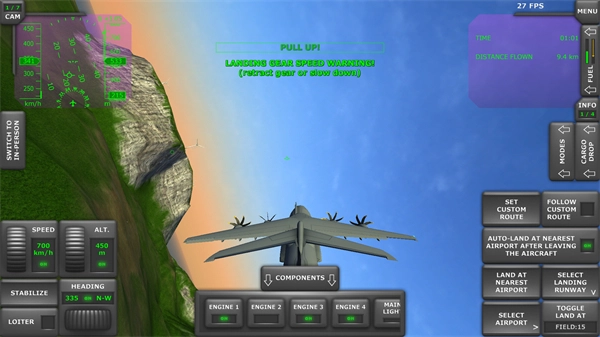 2、所有飞机均配备了大尺寸的三维图形(包含细节丰富的驾驶舱),以此为飞行模拟提供真实的物理效果支撑;