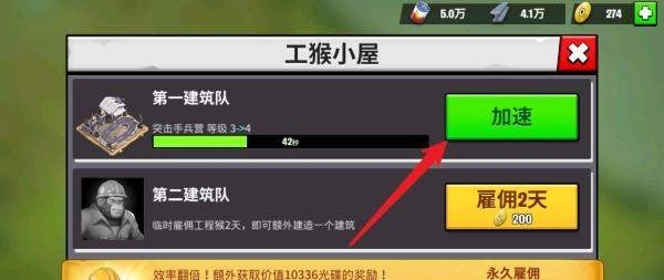 选择加速方式:在建筑管理界面里,找到要加速升级的建筑,点击它右边的“加速”按钮。此时系统会弹出加速选项窗口,里面有两种加速途径可供选择: