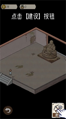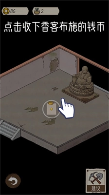 2、耐心等待香客进入天王殿内,当看到内部环境破烂不堪时,可点击【建设】按钮来对天王殿的环境进行改善。