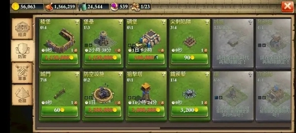 1、军事发展的基础在于军事建筑的科学布局,这类建筑可划分为进攻型与防守型两类。进攻型建筑包含用于训练部队的兵营、解锁新兵种的铁匠铺,还有竞技场、帝王陵等;防守型建筑则有营寨、马厩、箭塔、投石器、指挥所等设施。一支强大的军事力量,其背后必定配备着攻守平衡的军事建筑体系。