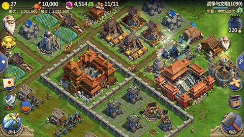 2、全面的军事建筑若要充分发挥其最大军事效能,需进行合理布局。通常情况下,为防止军事建筑被敌人迅速破坏并降低资源损耗,会将防御性军事建筑与资源建筑集中建造,同时借助城墙的构建加以防护,以此最大限度地保障其战斗威力。