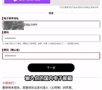 输入国内的电子邮箱,并设置密码进行登陆