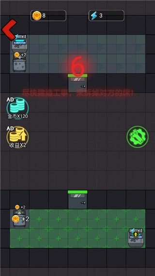 1、多样趣味的战斗机制,紧张刺激的竞技模式,即便在睡梦中也能积累财富升级炮塔。