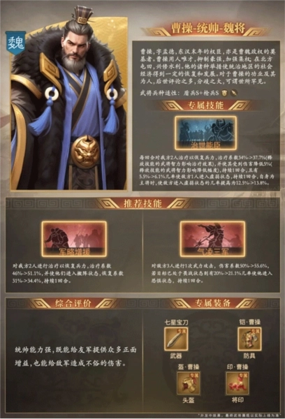 曹操具备出色的统帅才能,不仅能为友军带来诸多积极的增益效果,还能对敌军造成相当可观的伤害。