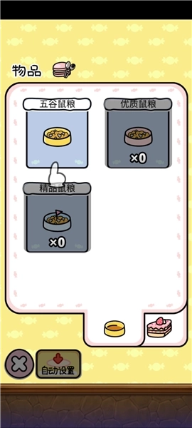 7、现在选择五谷鼠粮,放置在仓鼠家园里。要是没有食物,任何物品都吸引不来仓鼠。你有无限的食物,所以有空的时候记得回来填满哦。