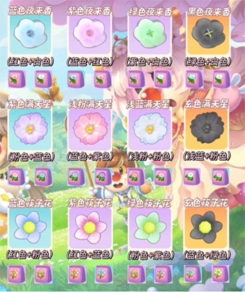 2、紫色夜来香=蓝色夜来香+粉色夜来香