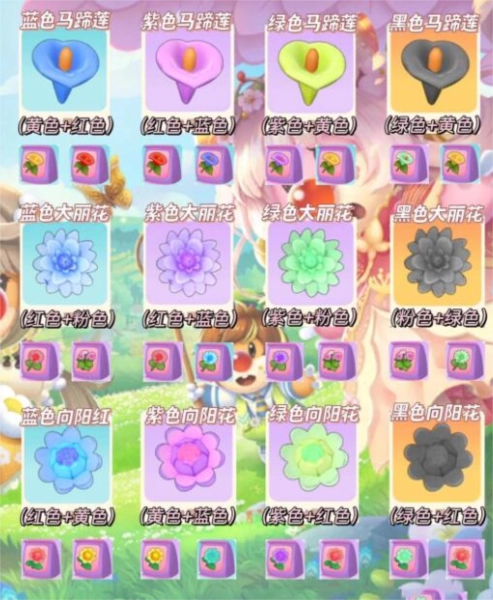 1、蓝色马蹄莲=黄色马蹄莲+红色马蹄莲