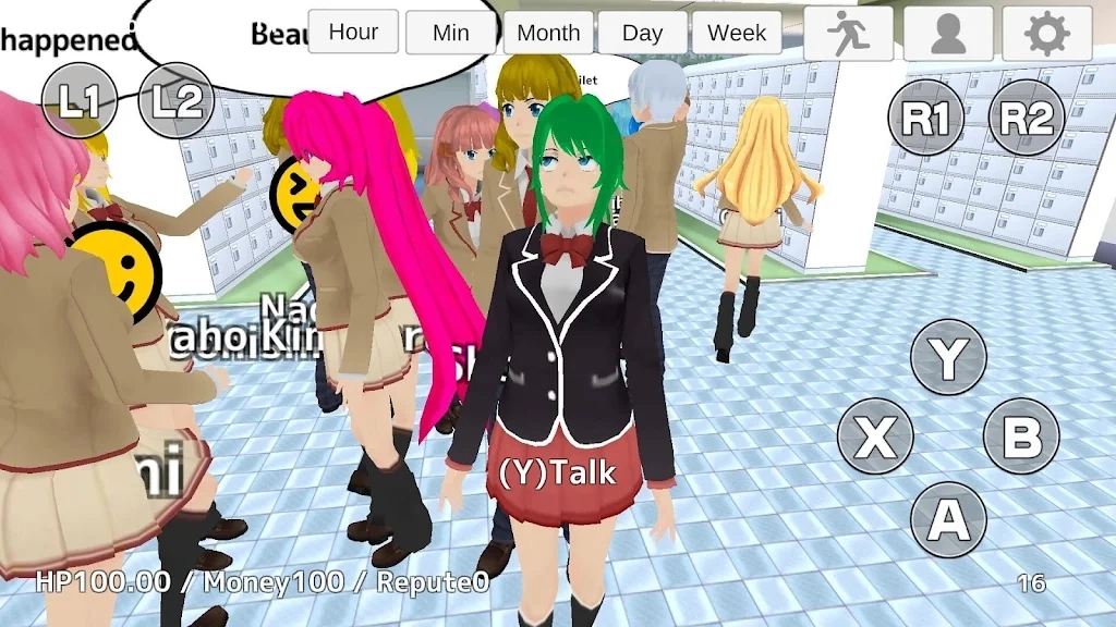 1、游戏地图广阔,场景多样。玩家可以操纵这个高中女生在各种场景中自由探索。