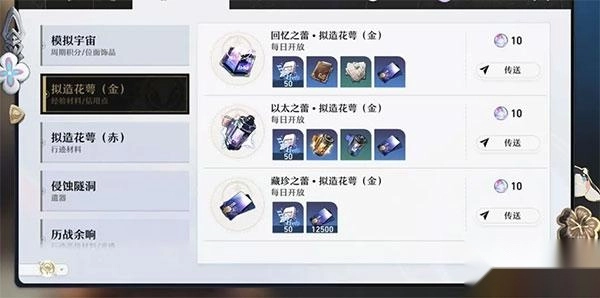 1、我们逐一来说,首先是角色经验素材,RPG角色都有等级设定。升级的途径除了打怪就是使用经验道具,不过更主要的还是经验书。在《崩坏:星穹铁道》里,经验本名为拟造花萼,其奖励会随着难度的提升而不断增加。